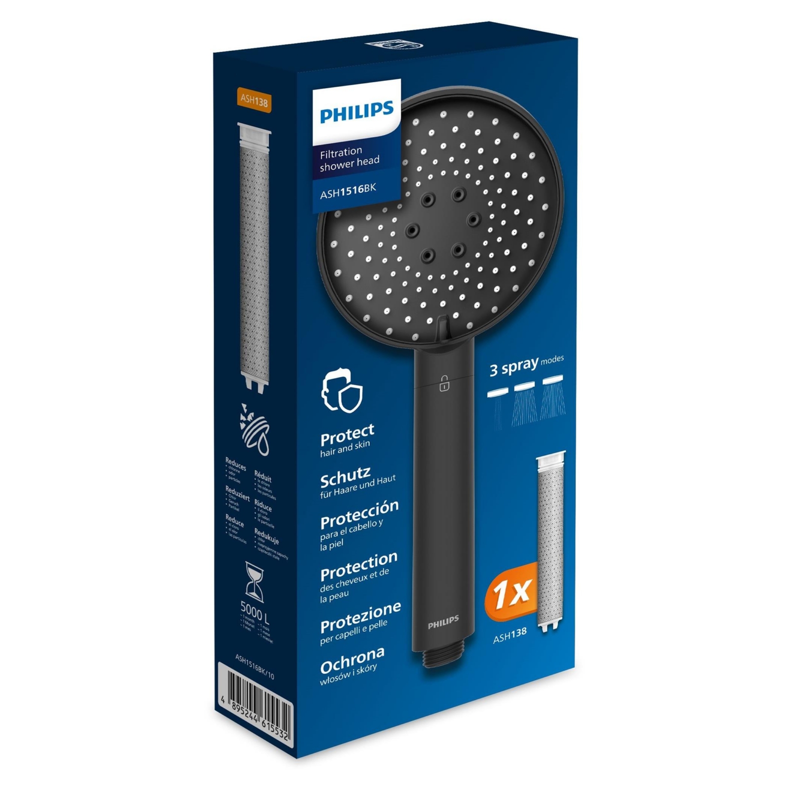 Filtrační sprchová hlavice Philips AWP1516BKČistá voda pro osvěžující sprchu – jednoduše odstraňte chlor a nečistoty